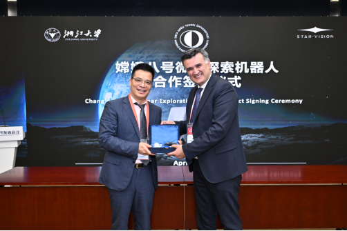 图说:2025年4月24日中国航天大会上地卫二公司与中东科技大学正式签约嫦娥八号国际合作项目。