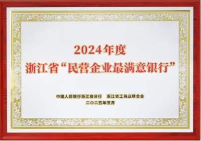 图说:南京银行杭州分行获评2024年度浙江省“民营企业最满意银行”