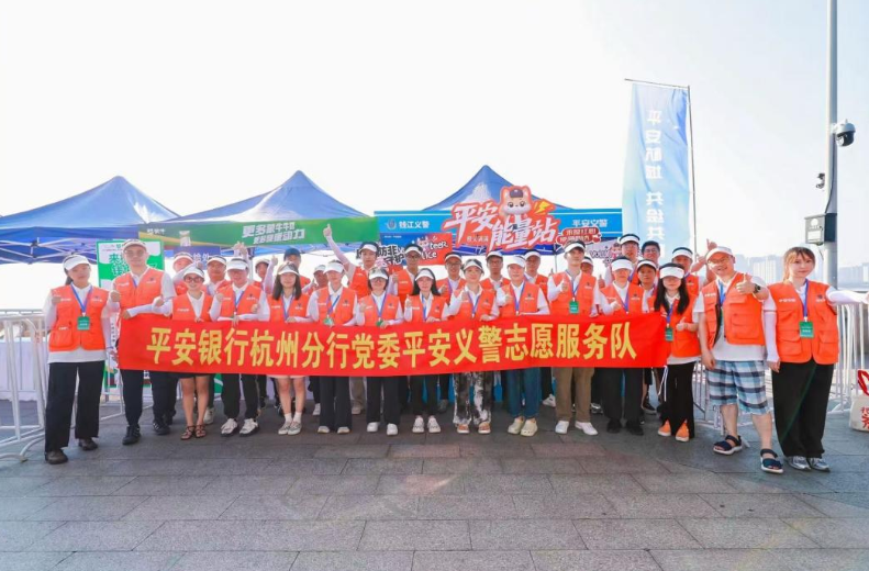 从滨江奥体中心到城市阳台的赛道上,一抹抹充满活力的“平安橙”深深融入“钱江义警”的蓝色方阵,与公安民警并肩而立。这支由杭州公安与平安银行杭州分行深度合作、共同组建的“平安义警”队伍,作为“钱江义警”的重要社会补充力量,将专业技能倾注于赛事服务。他们耐心疏导人流,确保秩序井然;及时递送饮用水和功能饮料,为泳士补充能量;更有一批具备专业资质的健康、医疗成员严阵以待,随时准备提供急救药品和防暑降温支持,全天候守护着这条搏击风浪的生命线。