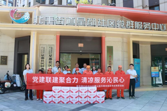 作为城市的“美容师”,环卫工人顶着烈日清扫街道,用辛勤劳动换来环境的整洁。该支行党、团员们将清凉物资一一送到北干街道星都社区环卫工人手中,并与环卫工人们亲密交谈,叮嘱大家在高温作业时注意防暑降温,保重身体。