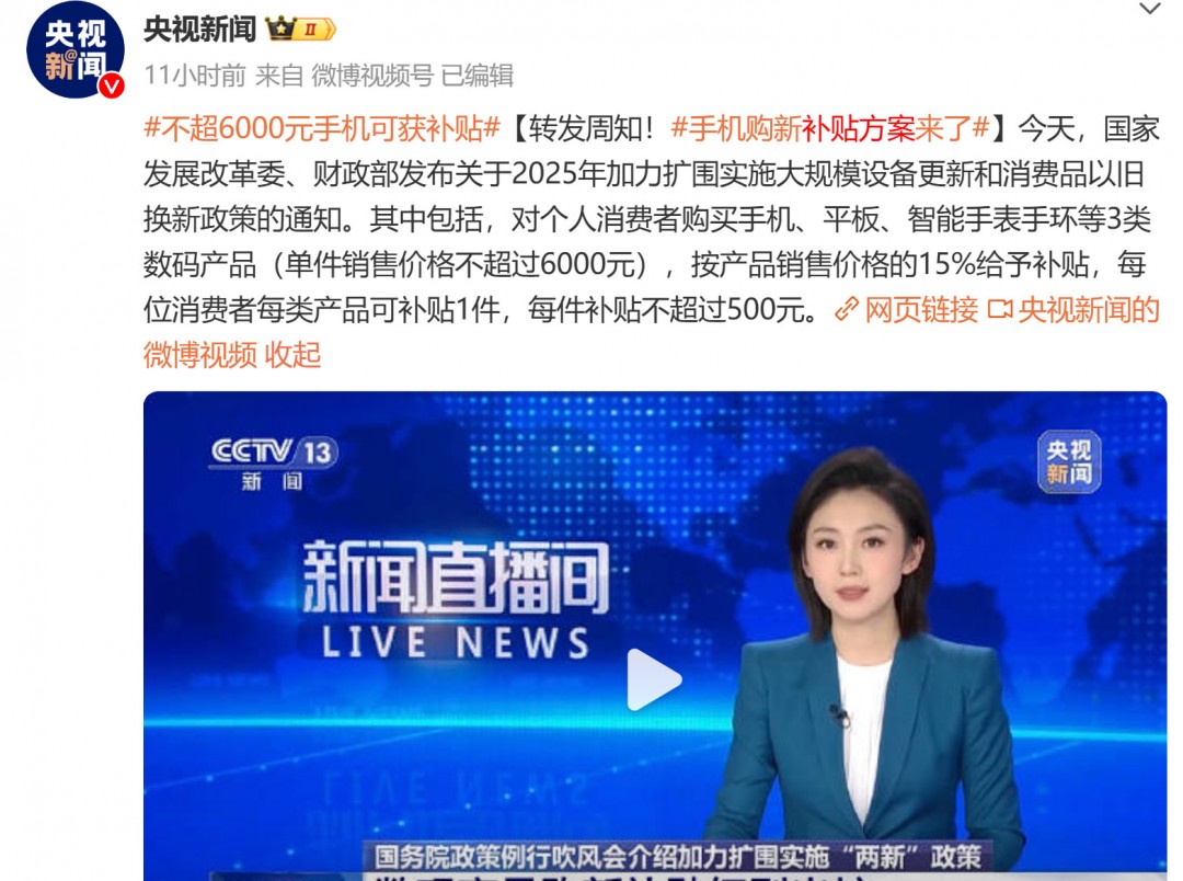 数码产品国补“满月” 超2671万名消费者参与