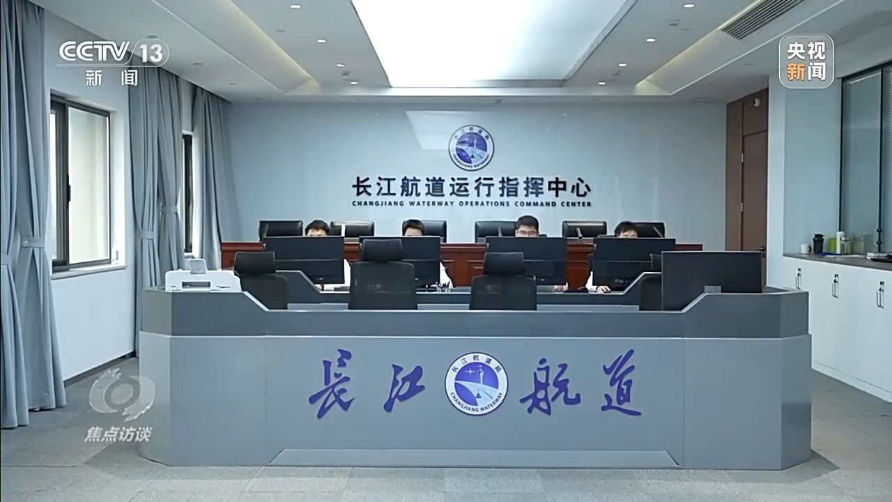 这里有智能化水上交通管控系统,面对川流不息的九股船流,记者看到指挥现场忙而不乱,三个屏幕分别显示实时的智慧海事数字信号、监控视频、无人机视频,每一道指令和提醒都发布得准确及时。
