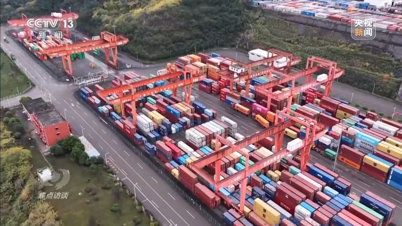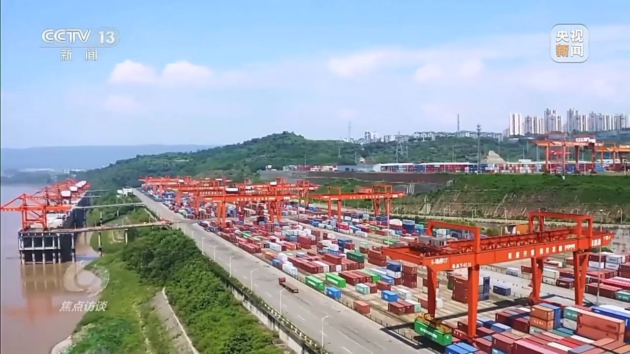 重庆海事局副局长 孙华:公、铁、水通过果园港多式联运,有一部分外贸运输走出了东盟,走到了南美洲,也是我们国家外贸提质增效,双循环、双通道建设的重要着力点。