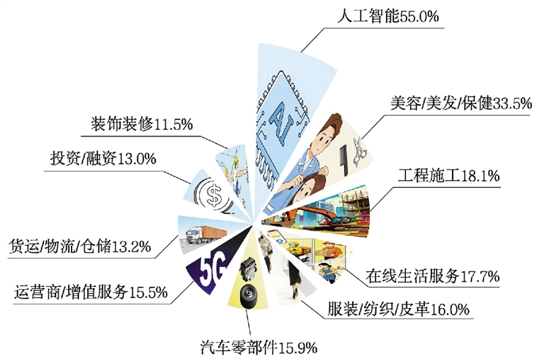 在杭州,从增速看,人工智能行业以55%的环比增速位列各行业第一位,美发/美容/保健、在线生活服务等服务行业招聘需求环比增速位居前五;从平均招聘月薪看,投资/融资行业(19762元)位居第一,机器人行业(17713元)位居第二,人工智能行业(15421元)位居第六。